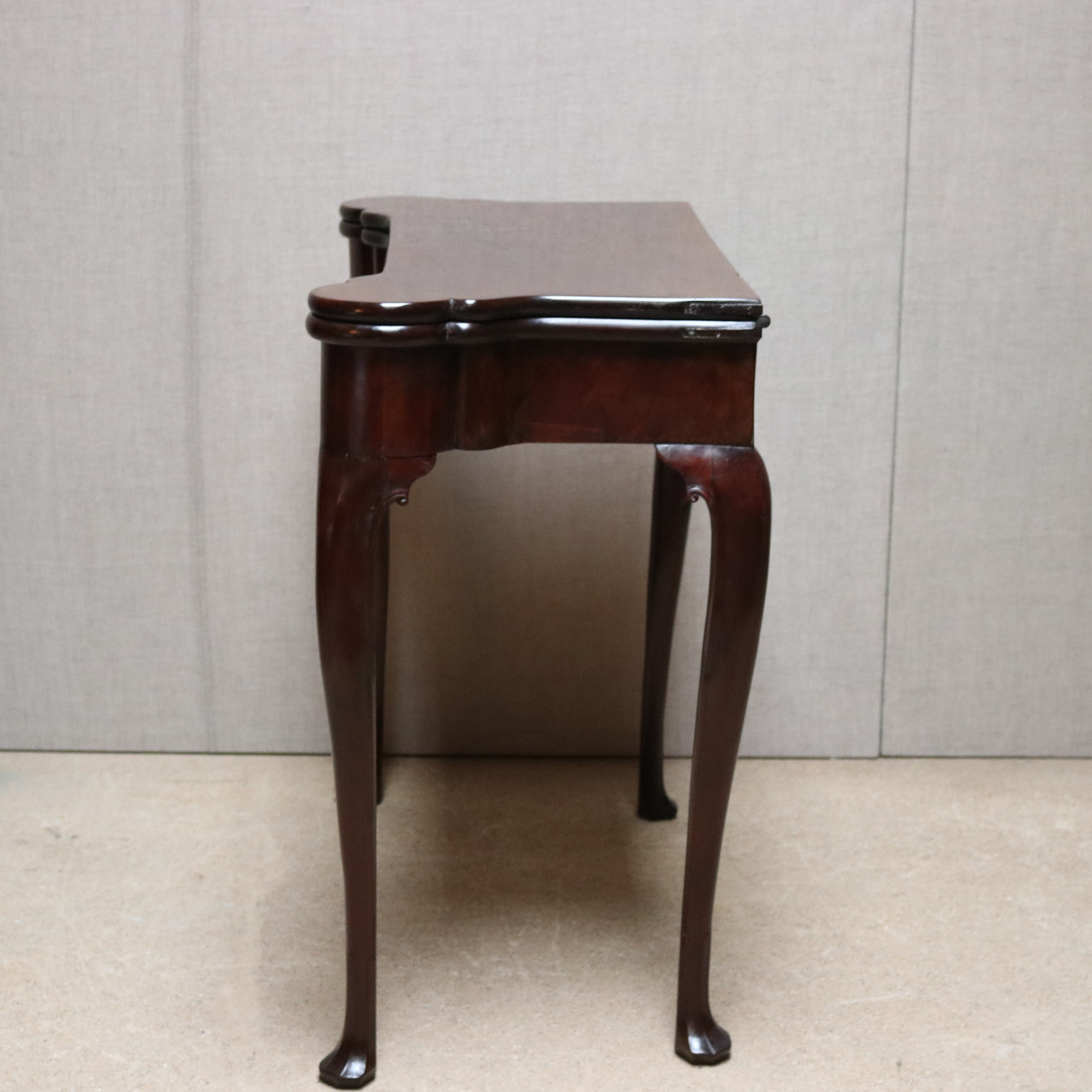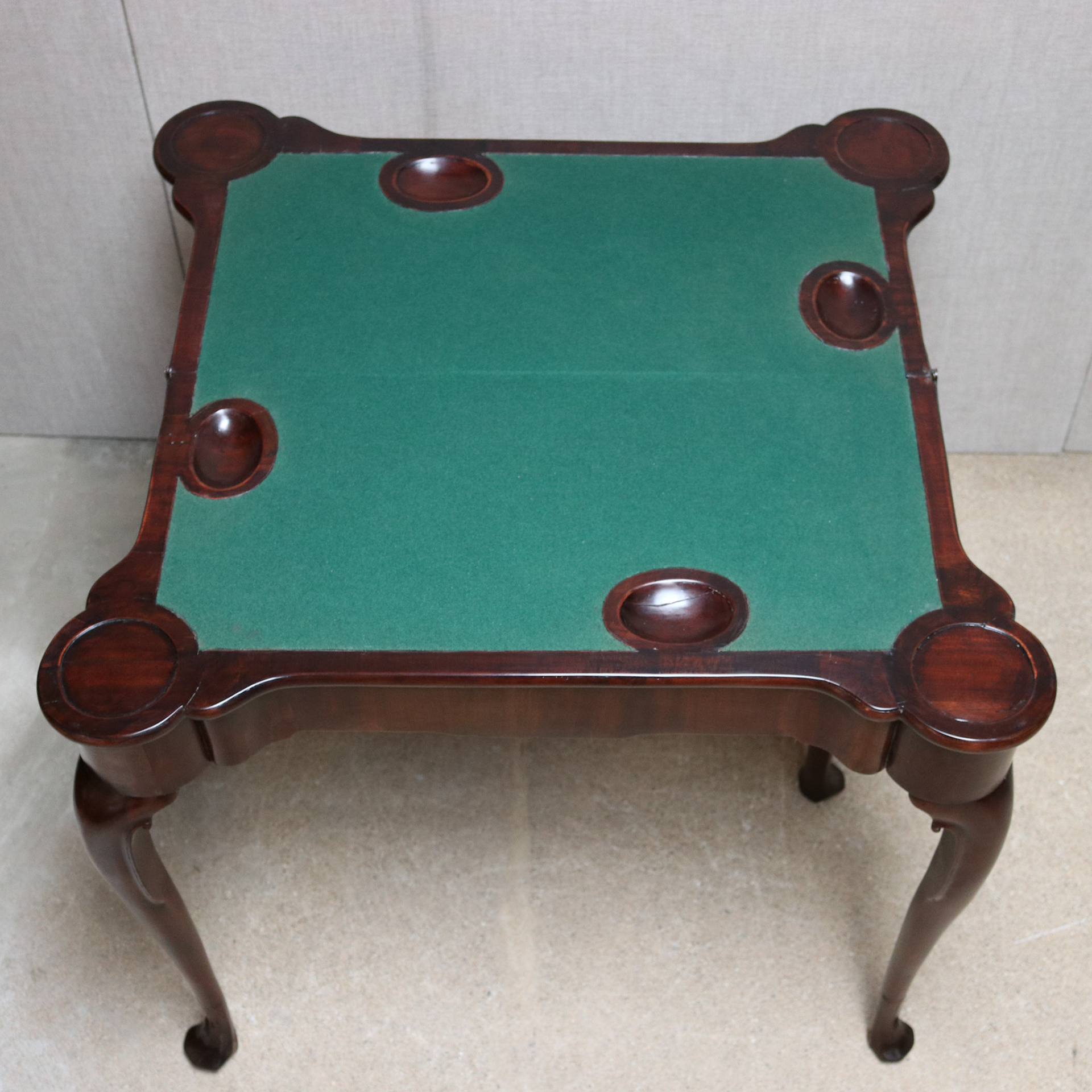 18th century cuban mahogany Irish games table on carved cabriole legs. Original hinges and in good solid condition.