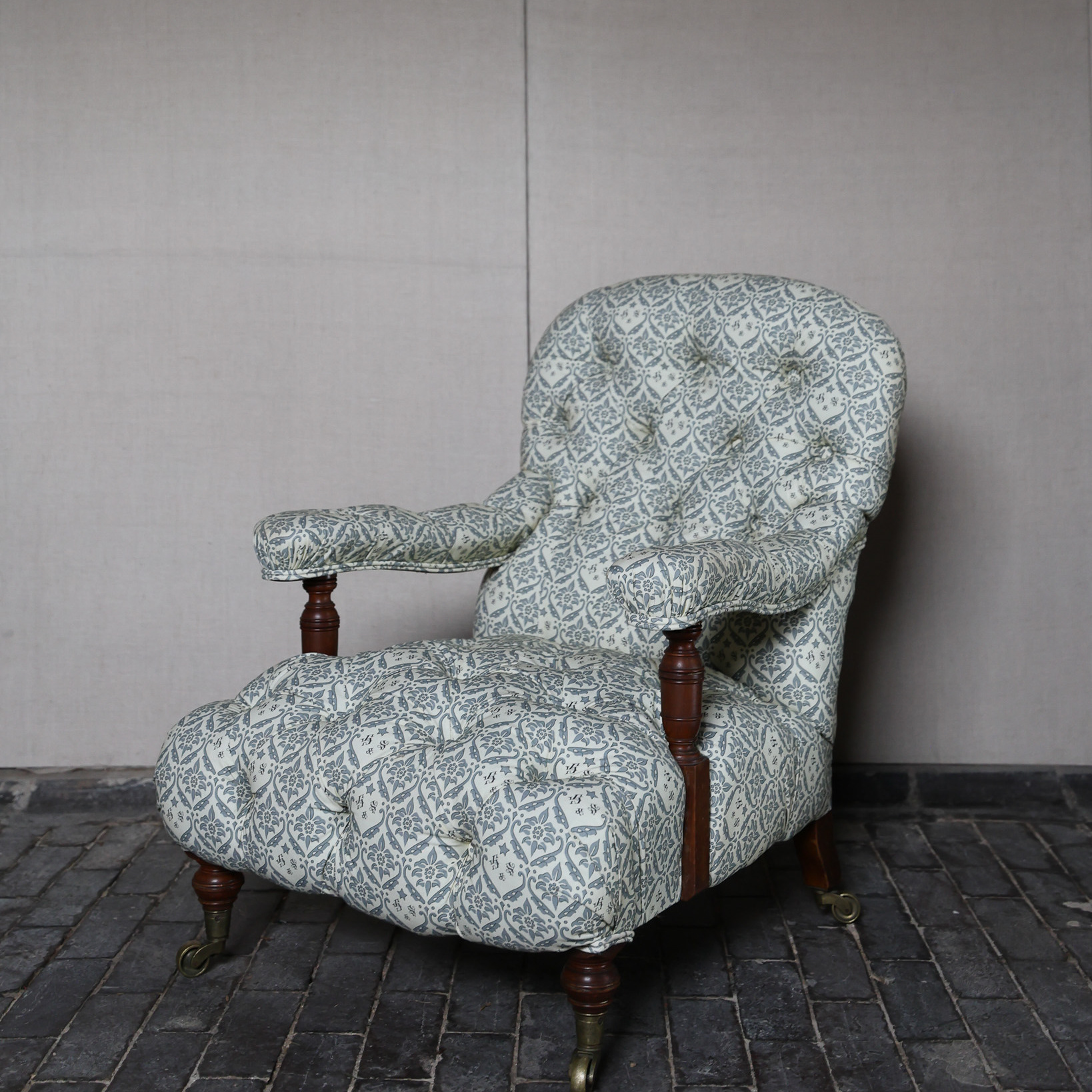 Bridgewater shaped armchair on shade mahogany legs