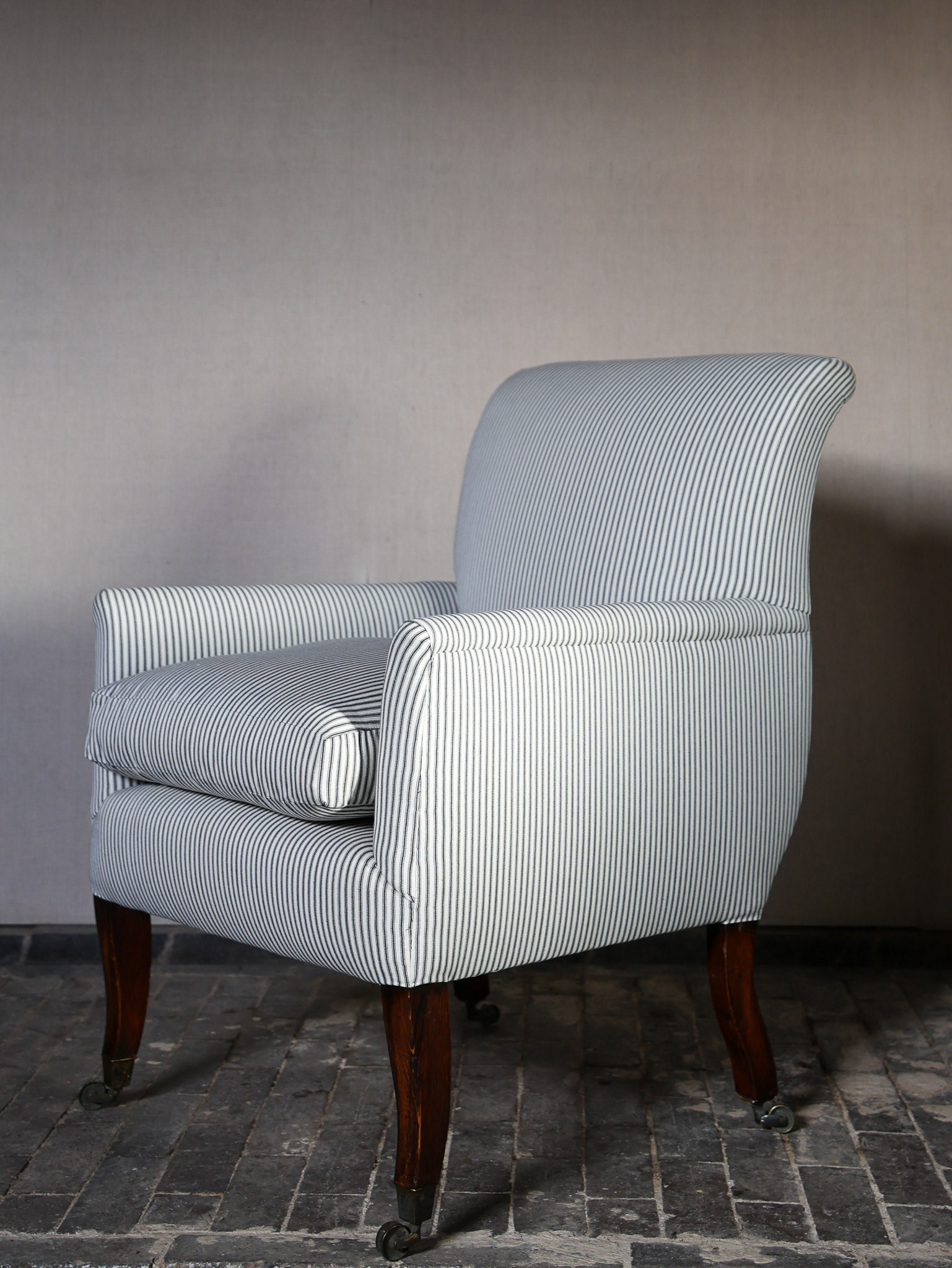 George IV caned library armchair on reeded turned legs, brass caps and castors. Attributed to Gillows Original horsehair squab. Frame in good solid condition, later cane work to arms, back and cane has been newly replaced to see please see last photograph. Available with squab covering £1450.
