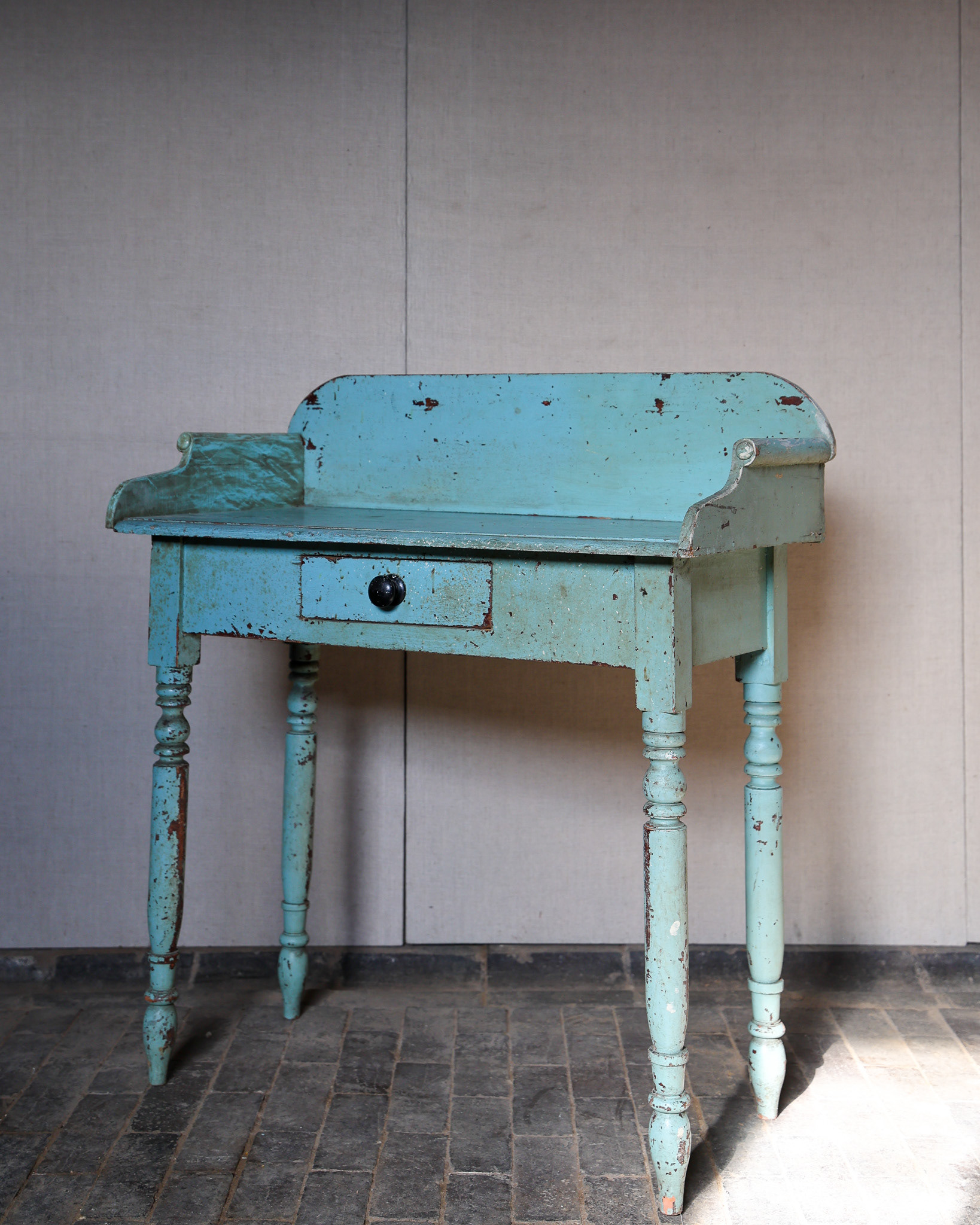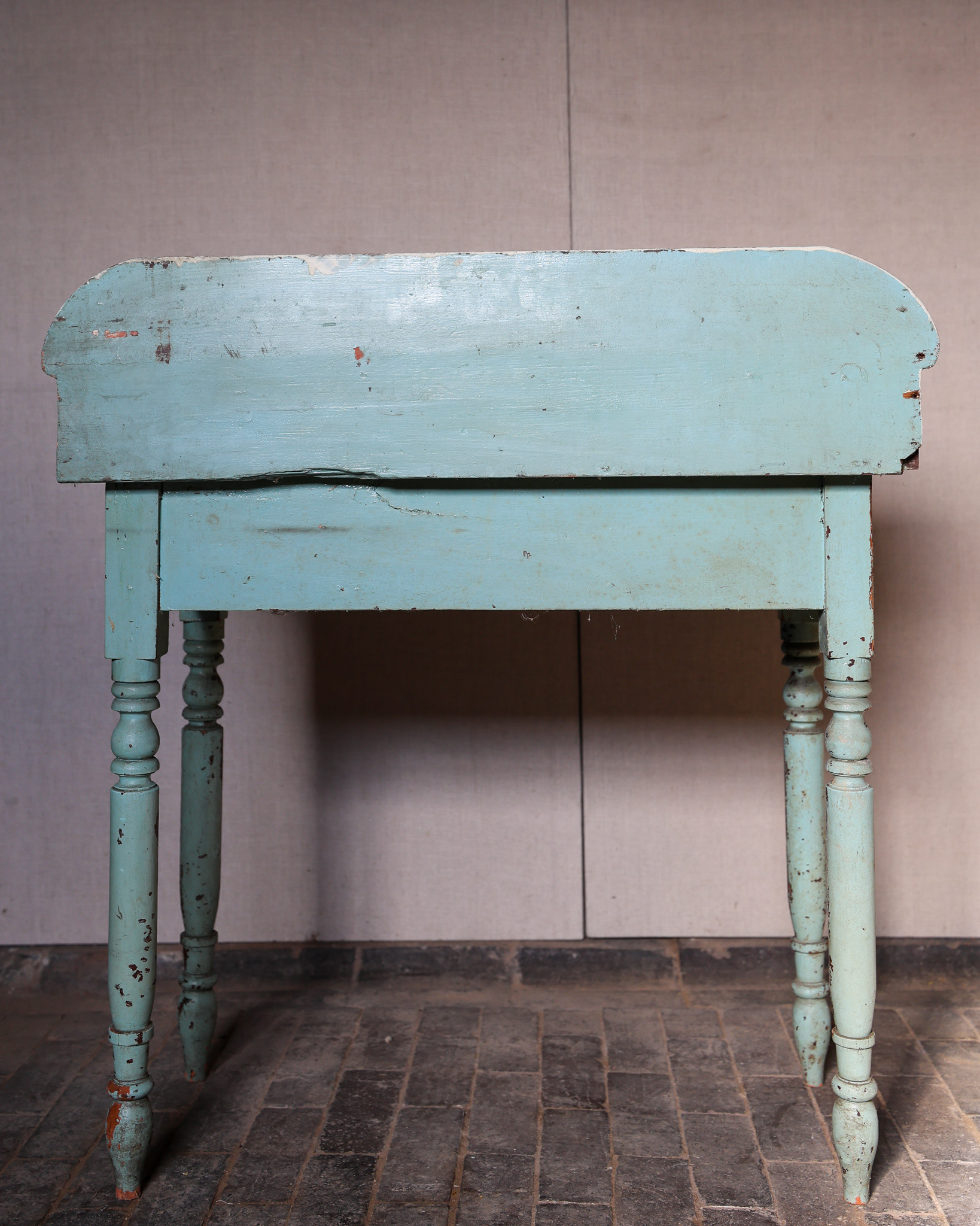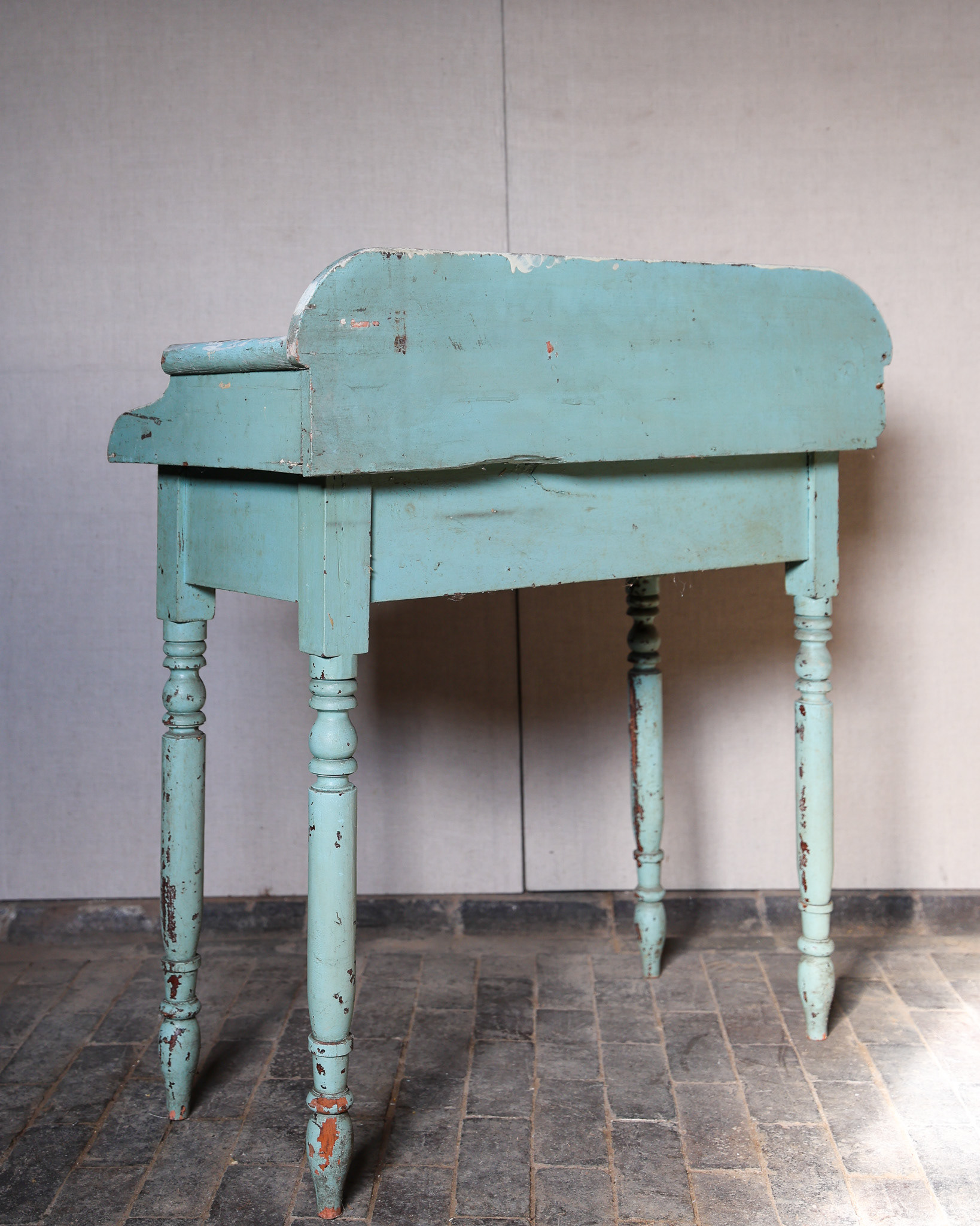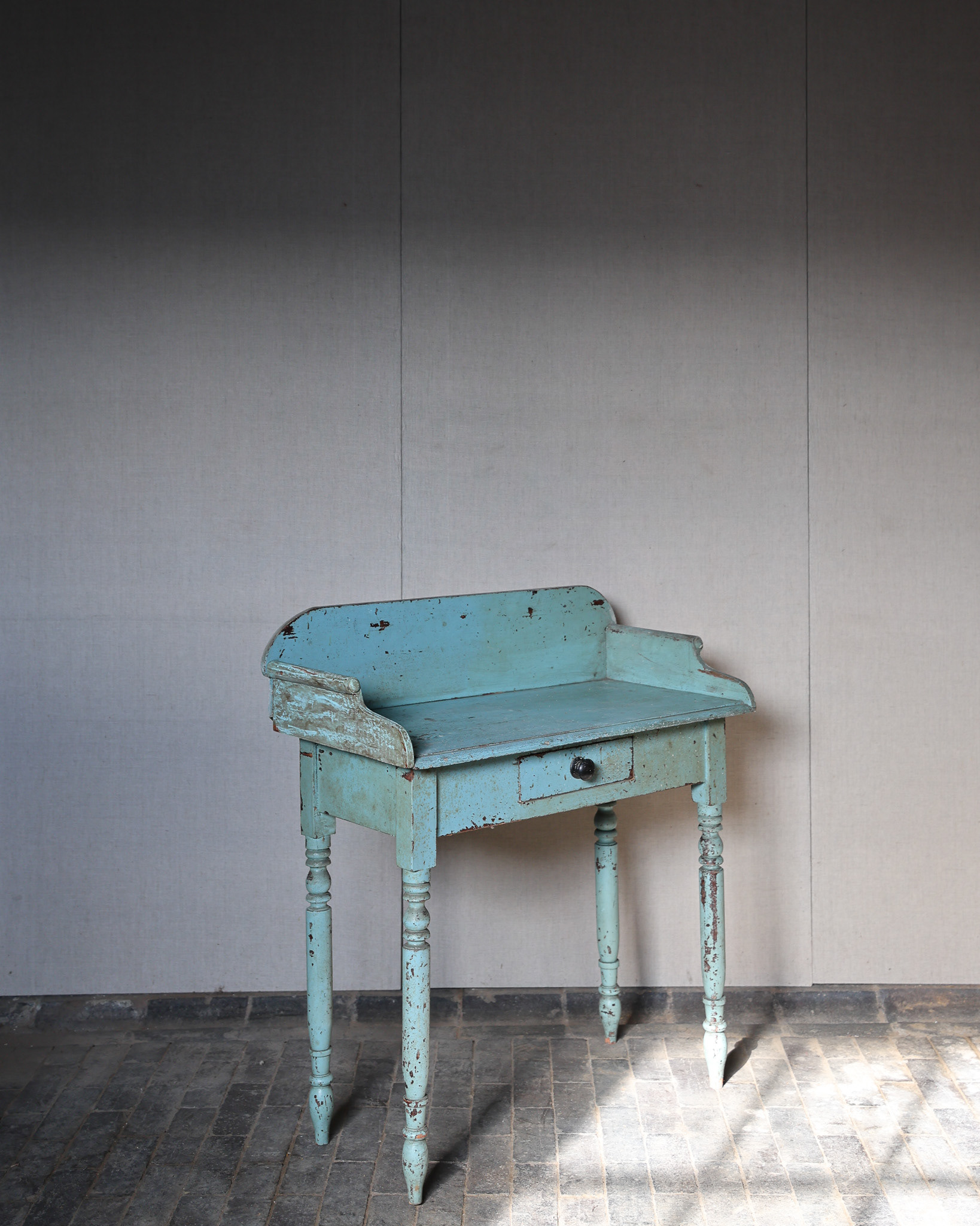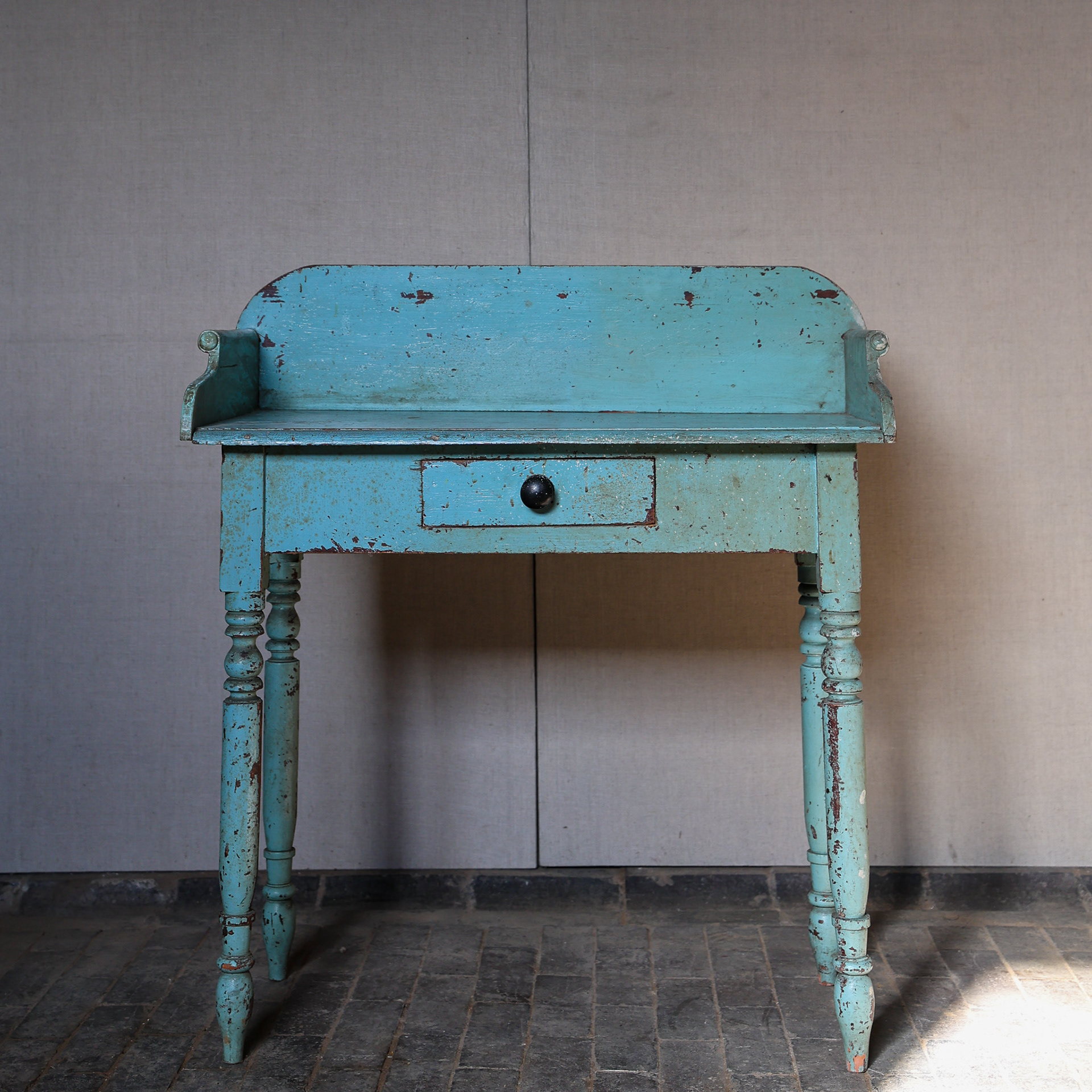 Country painted pine wash stand with single draw on turned legs. The left hand wing to the top is later. Circa 1820.
