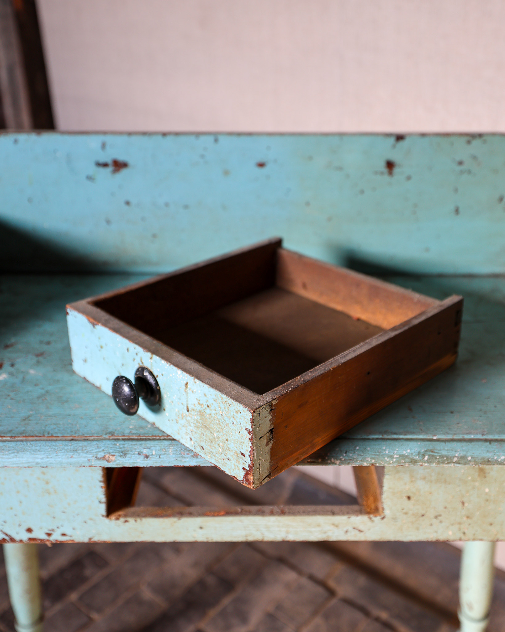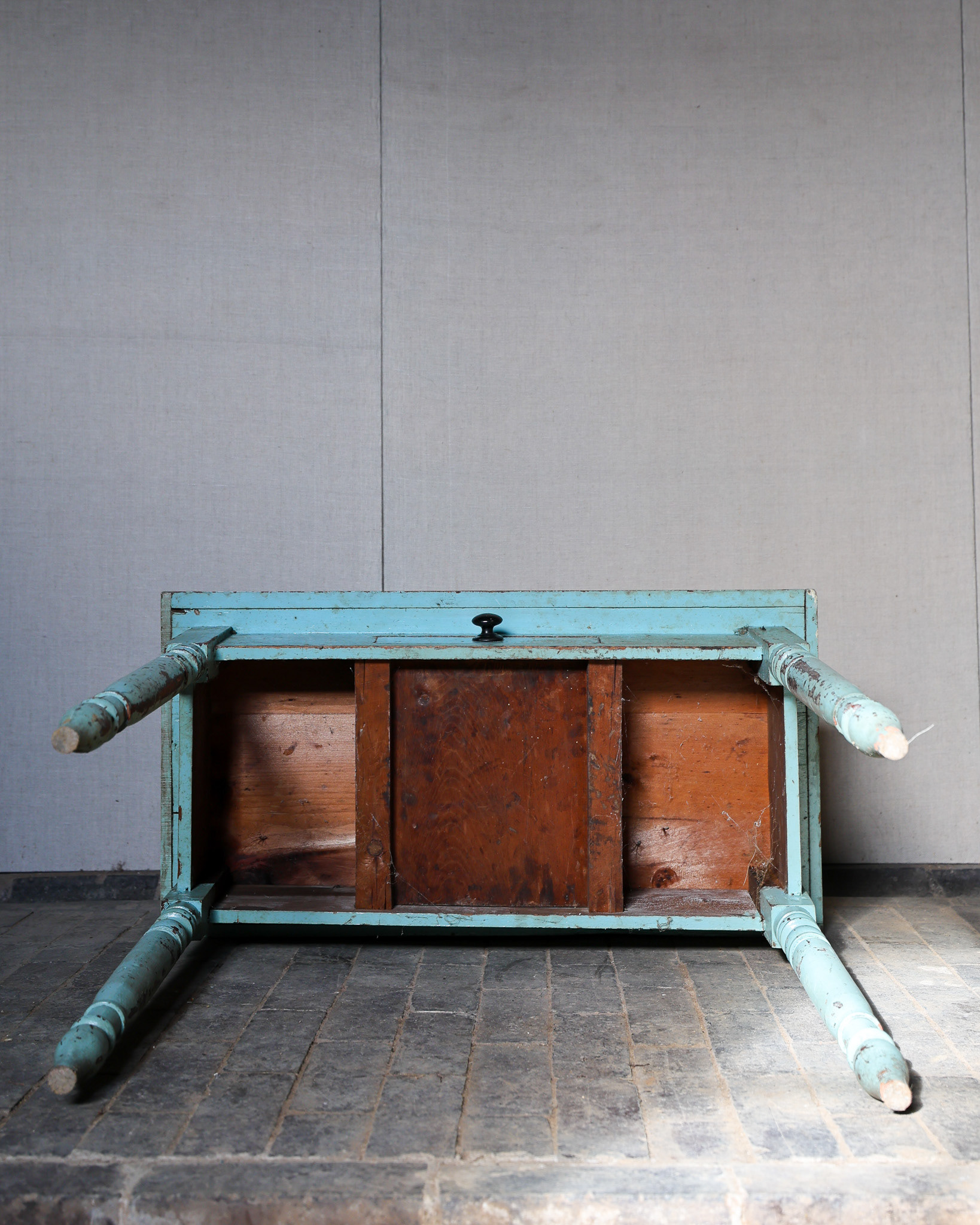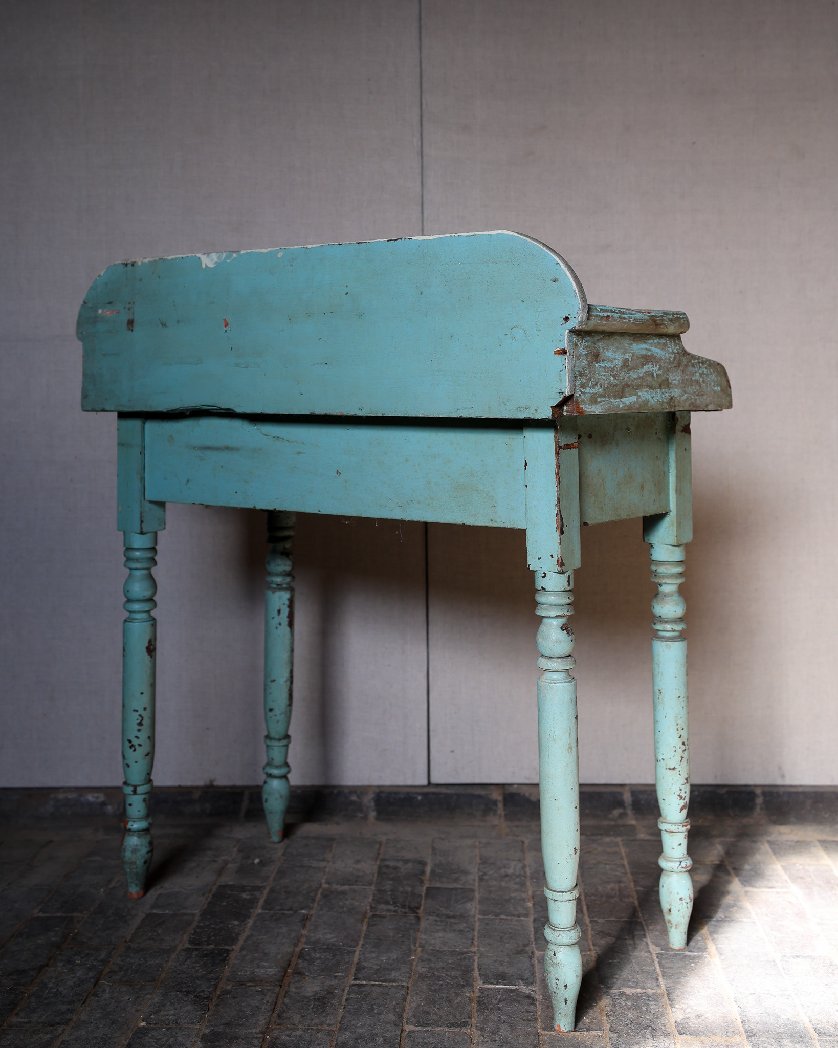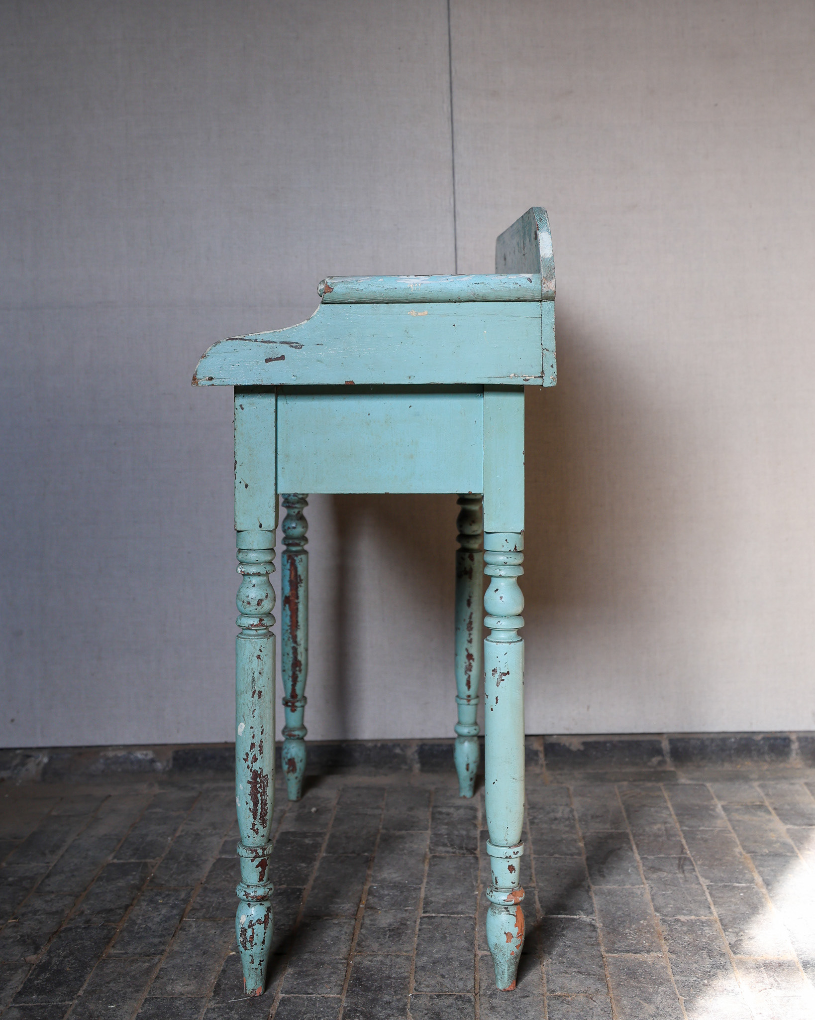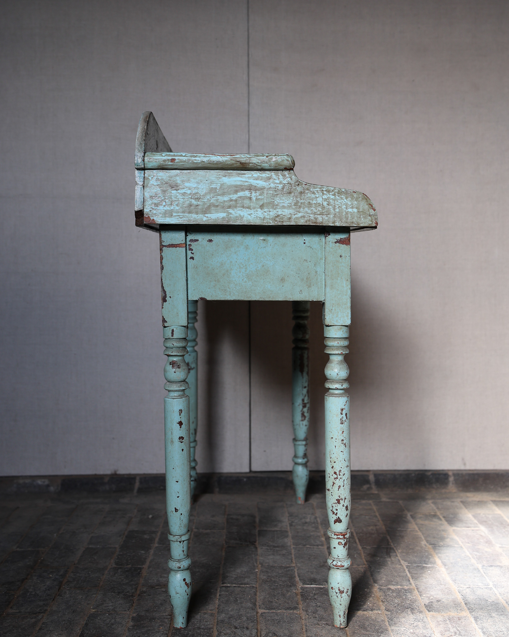 Country painted pine wash stand with single draw on turned legs. The left hand wing to the top is later. Circa 1820.