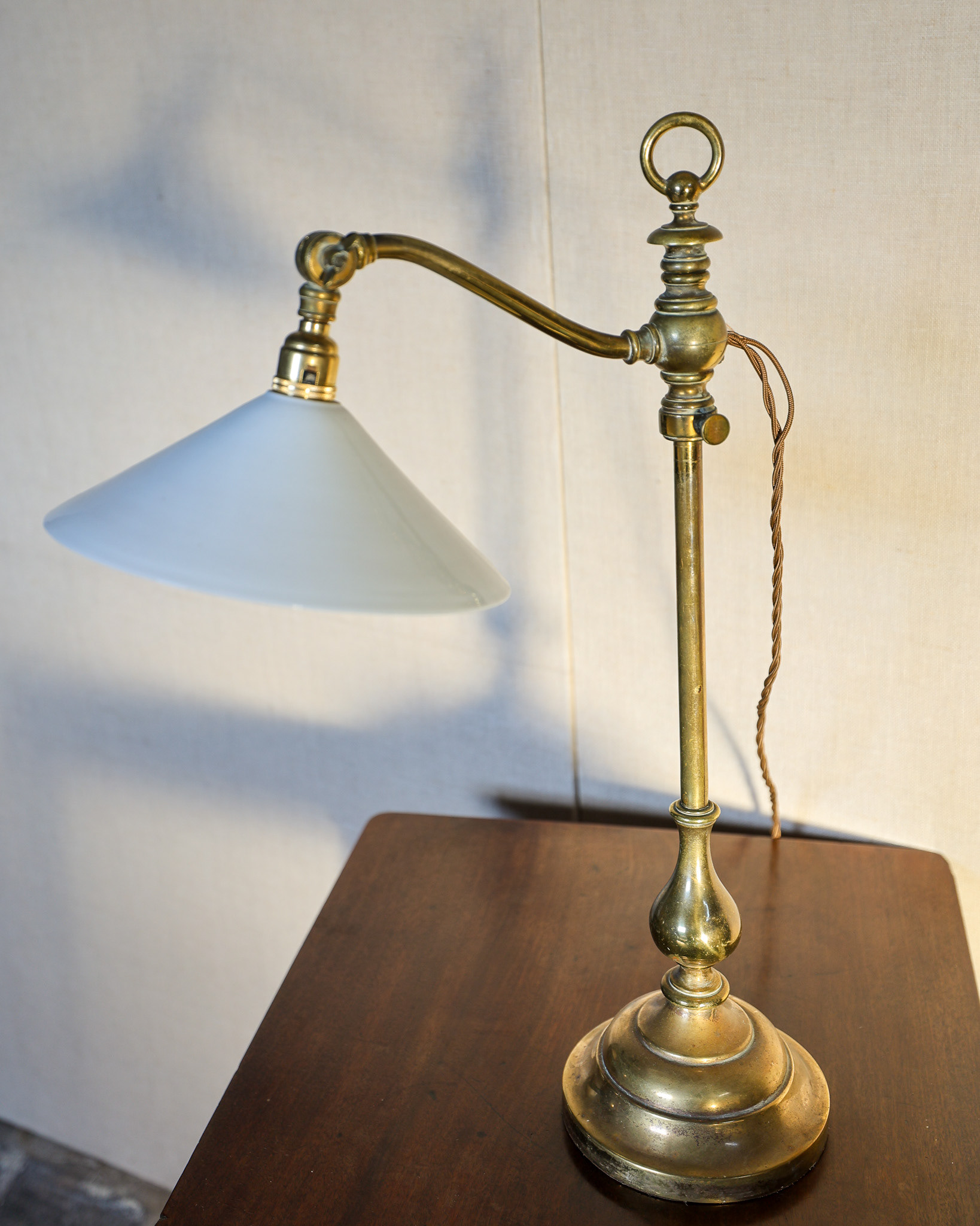 Adjustable brass student lamp, re-wired and tested. Circa 1905. £780