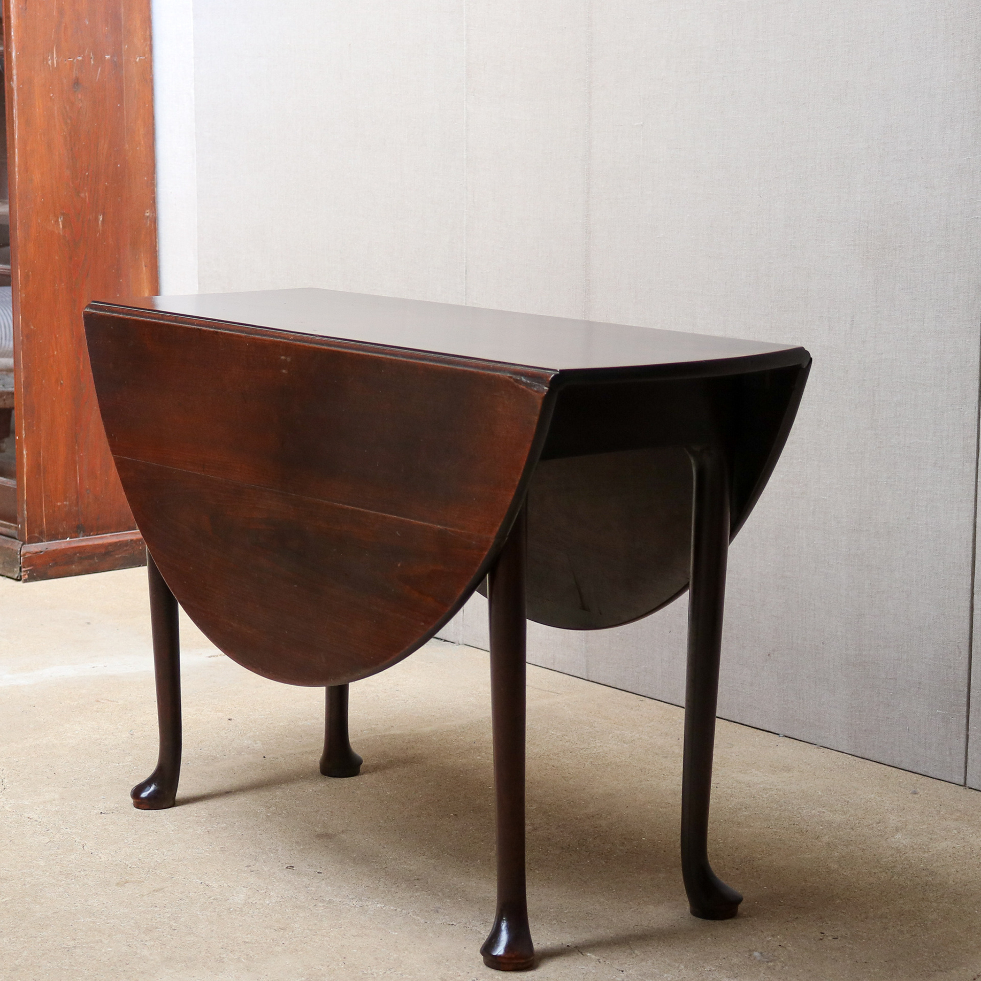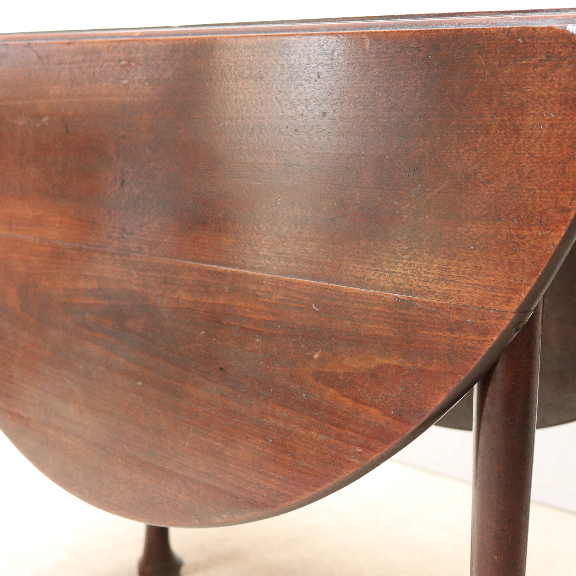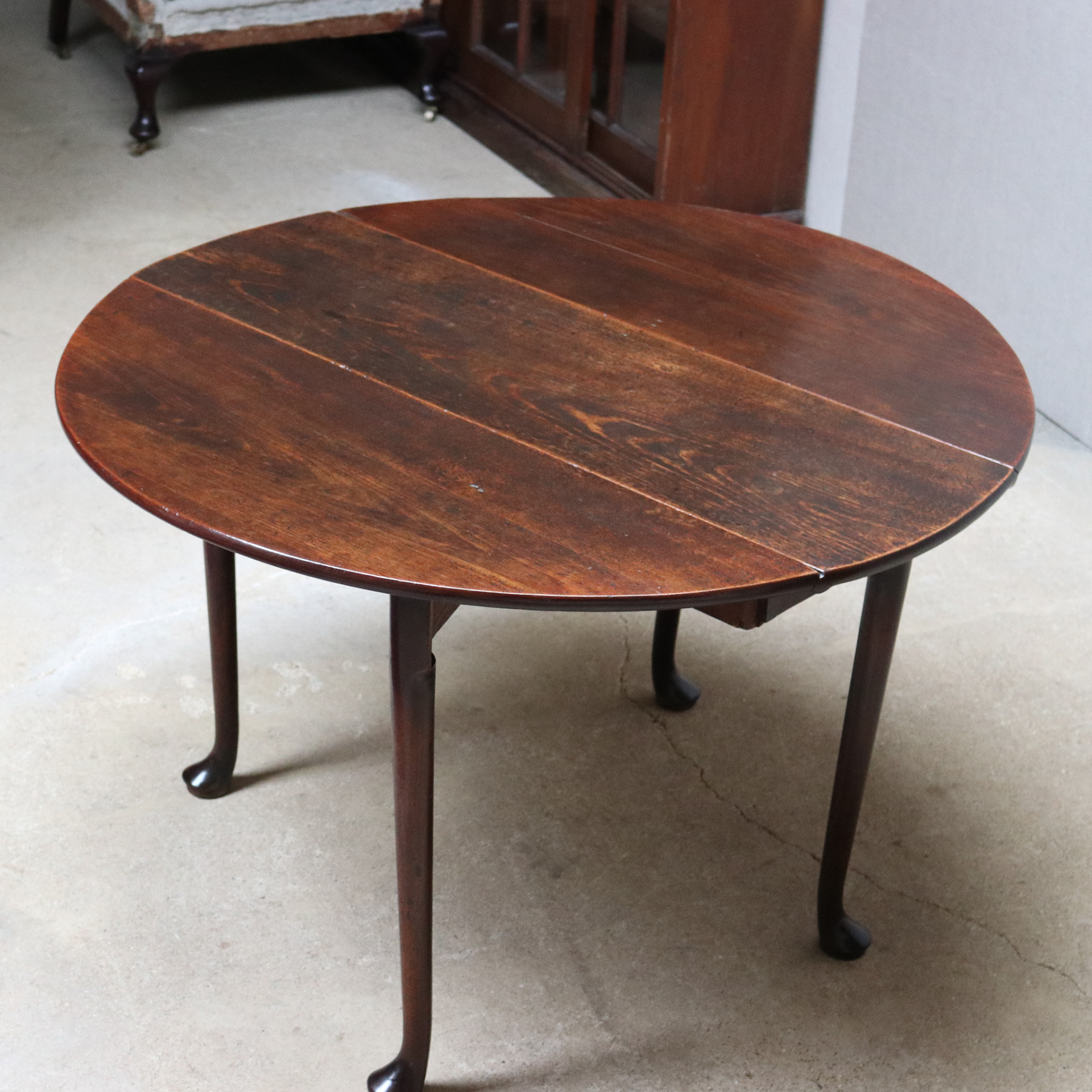 Walnut drop leaf table with rich patinated top on carved legs and pad feet. Circa 1740.