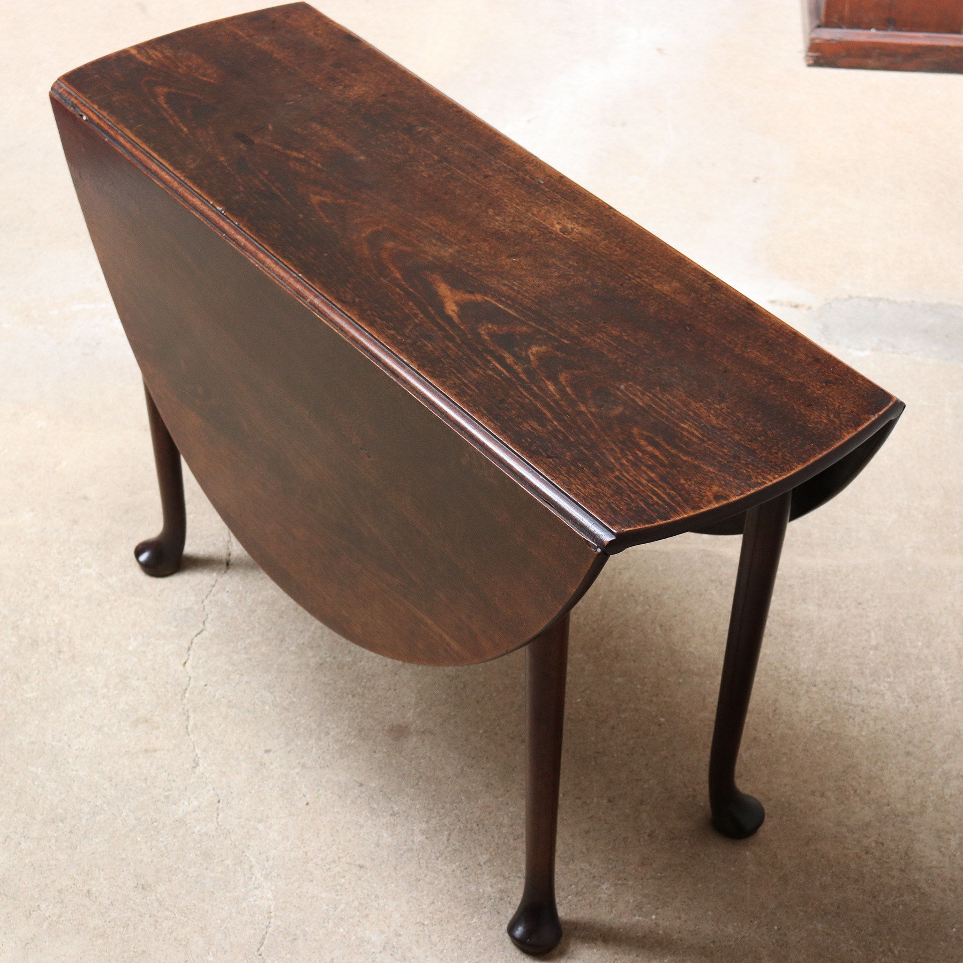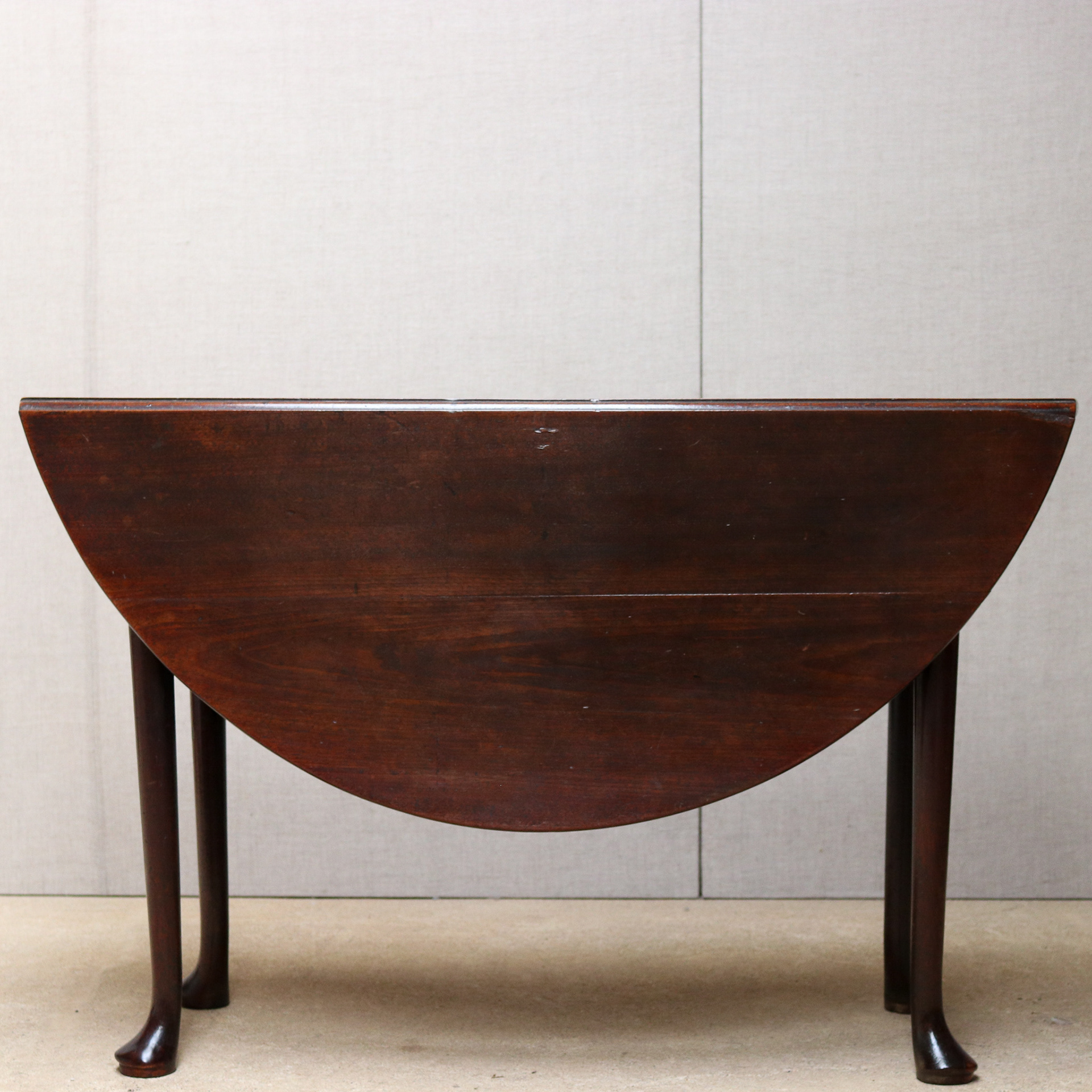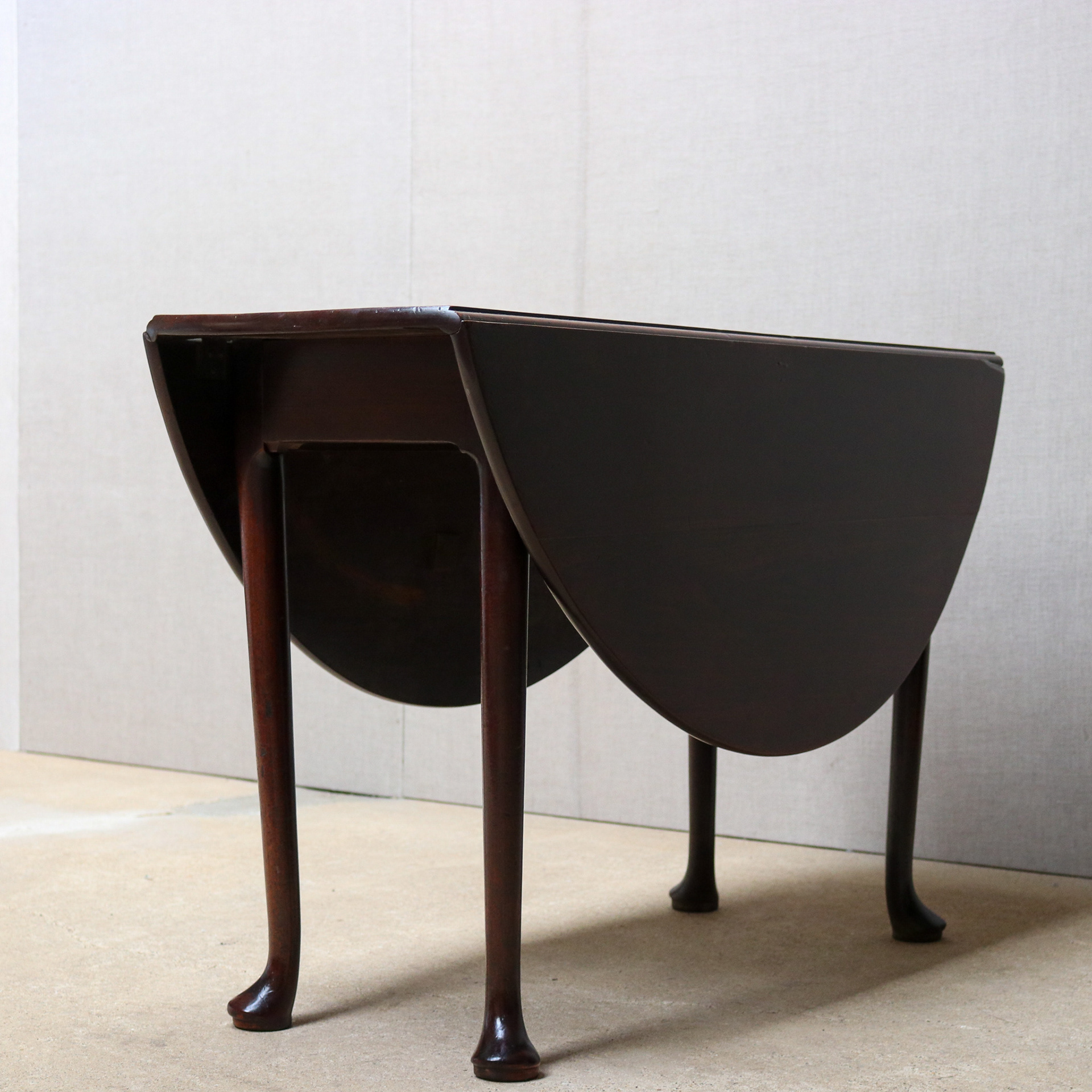 Walnut drop leaf table with rich patinated top on carved legs and pad feet. Circa 1740.