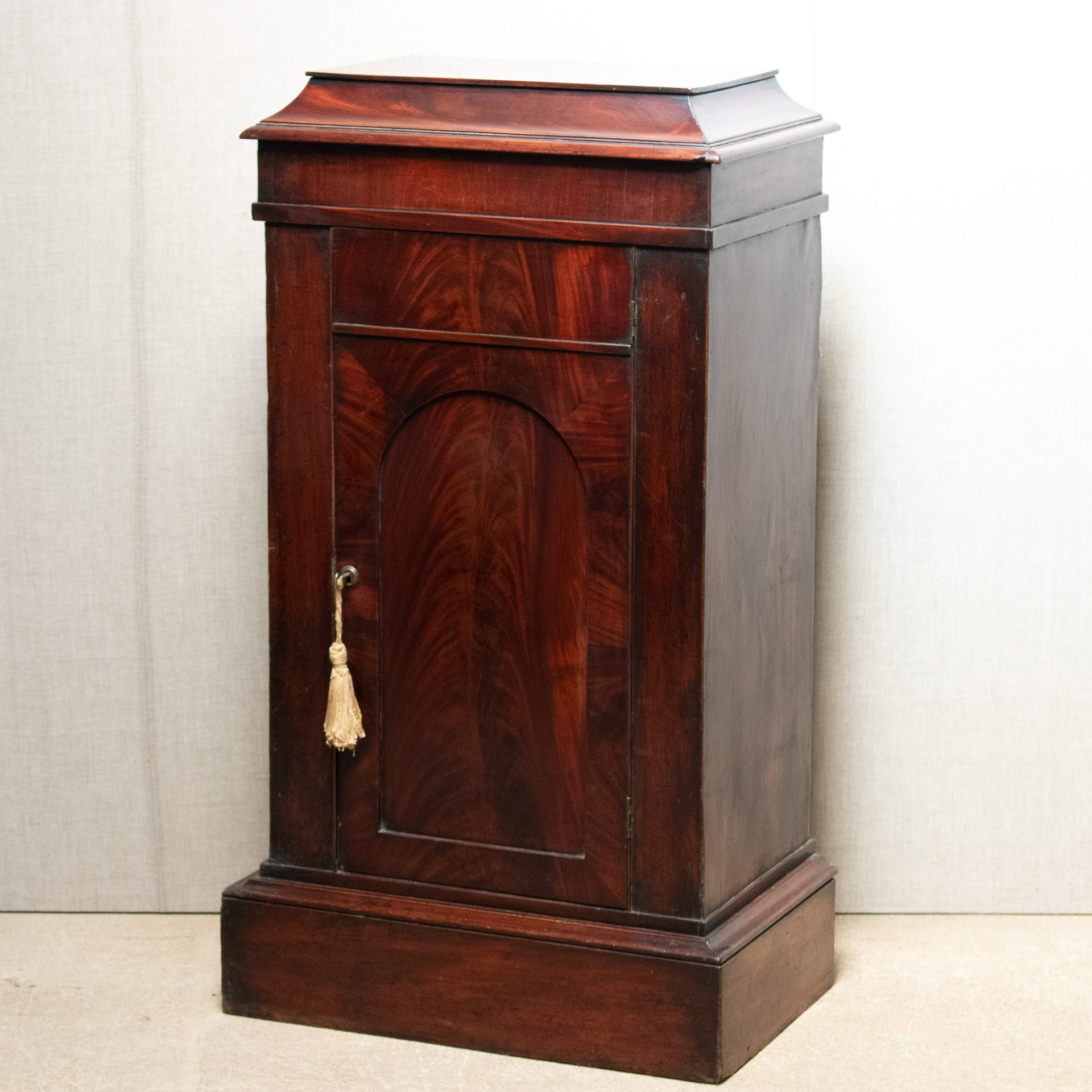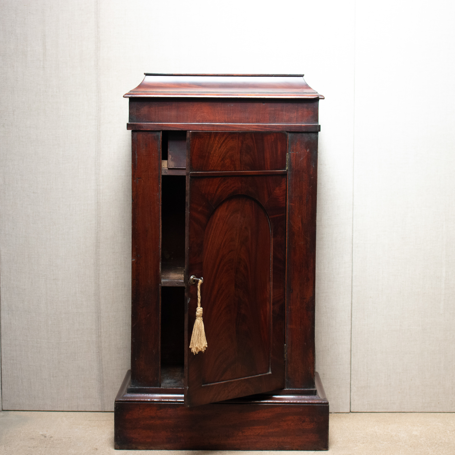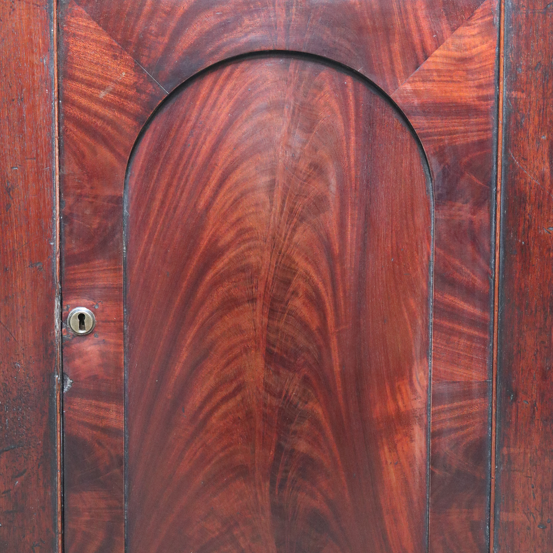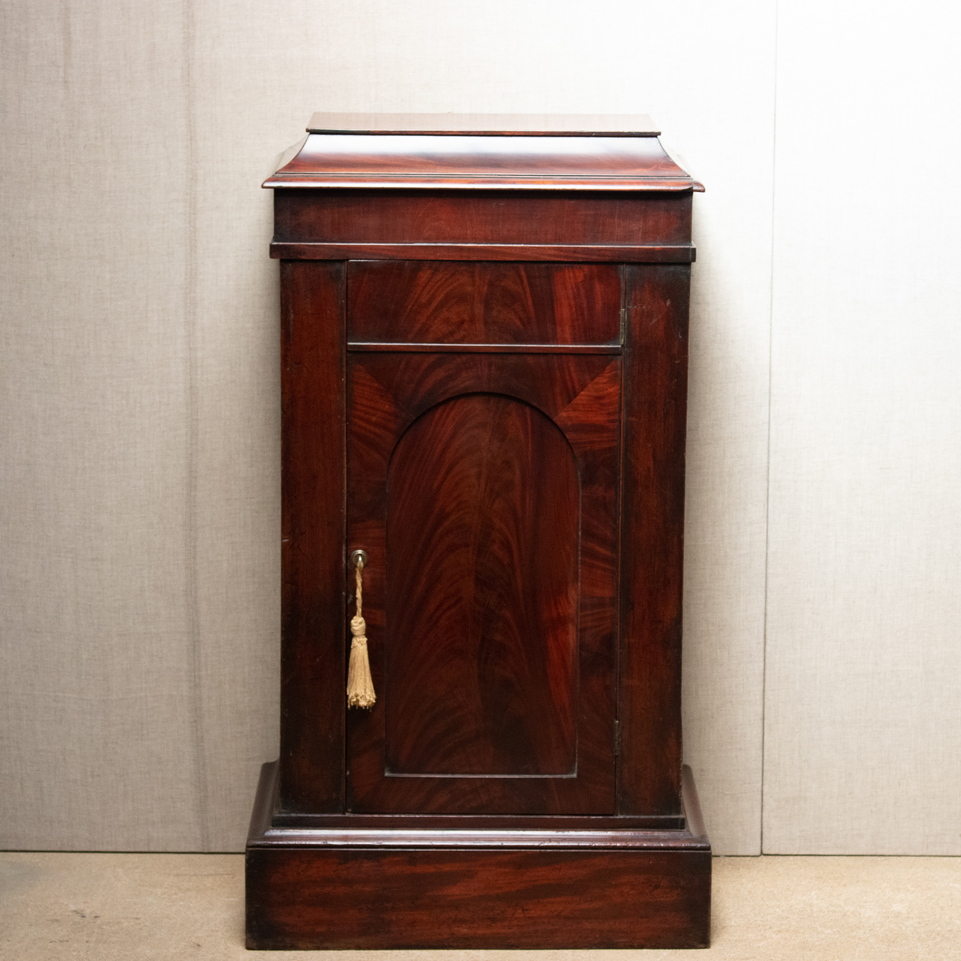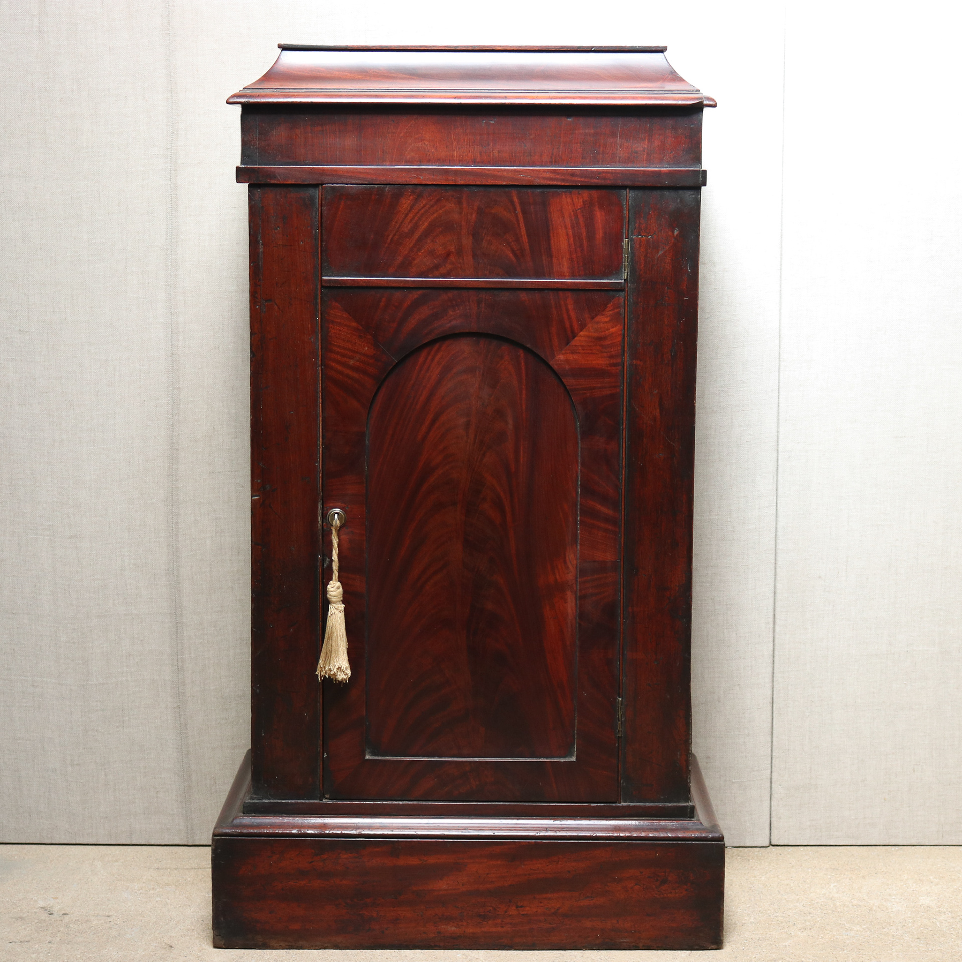 Georgian Flame Mahogany pedestal cupboard of large proportions to display pieces worthy of prominence.