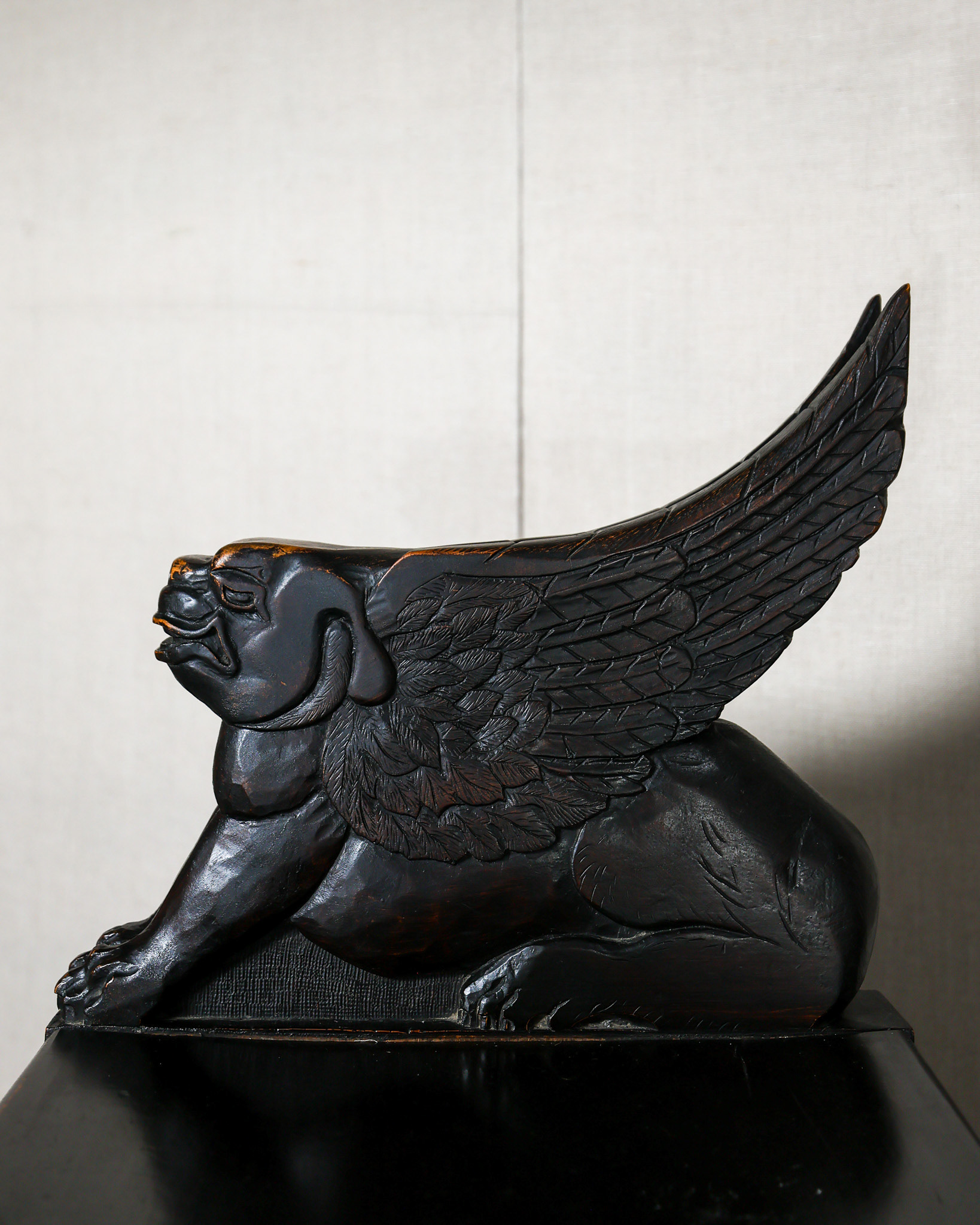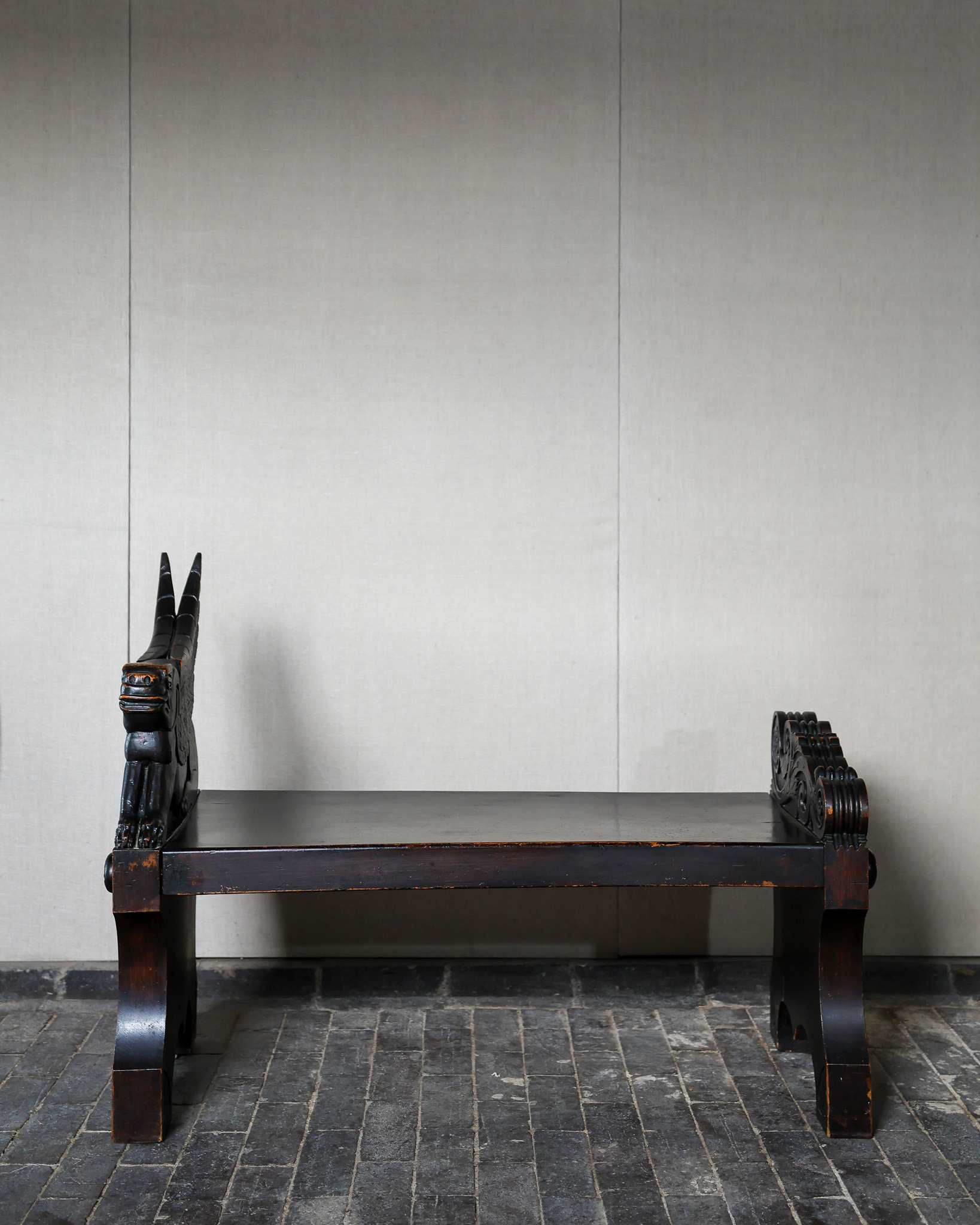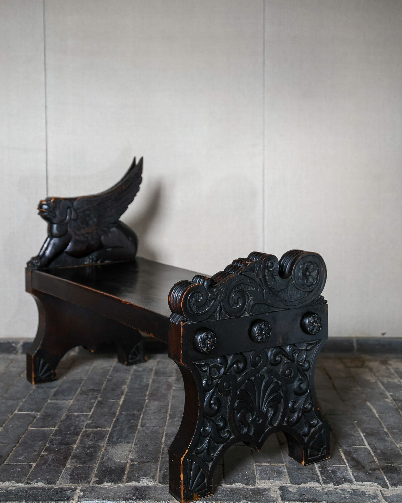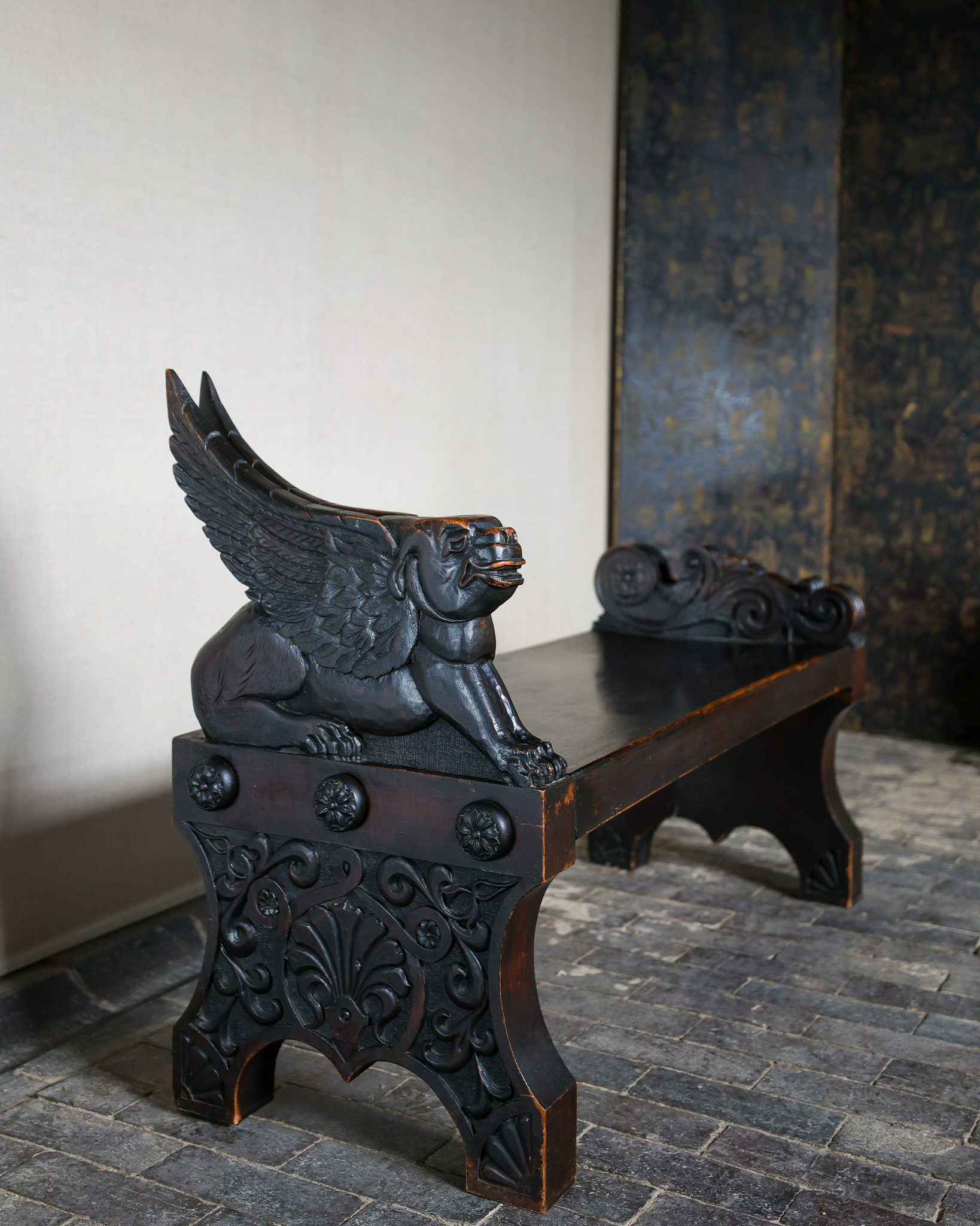 Hall bench seat with monopodia, ebonised patinated surface and solid construction. After Thomas Hope. Circa 1840. £1700