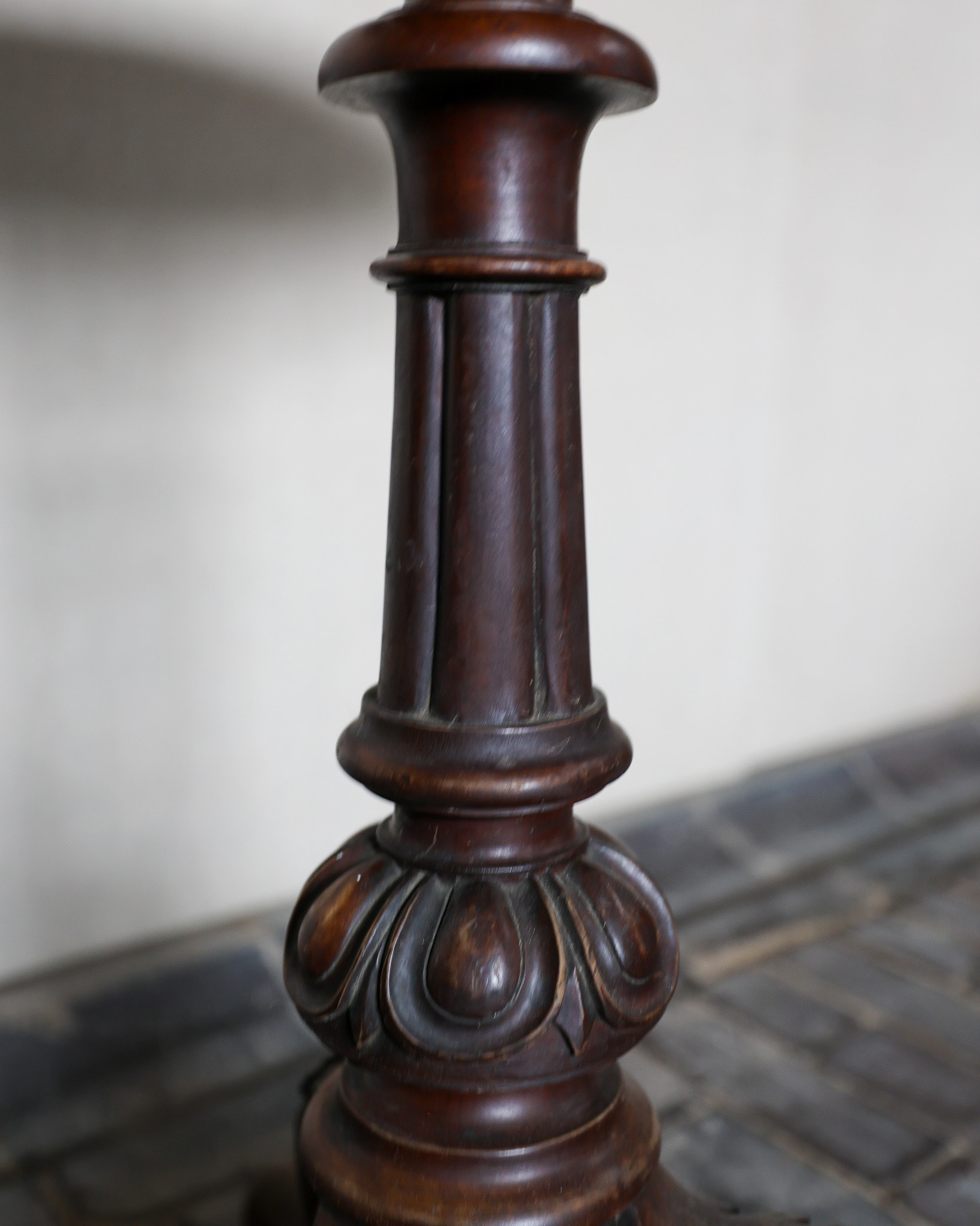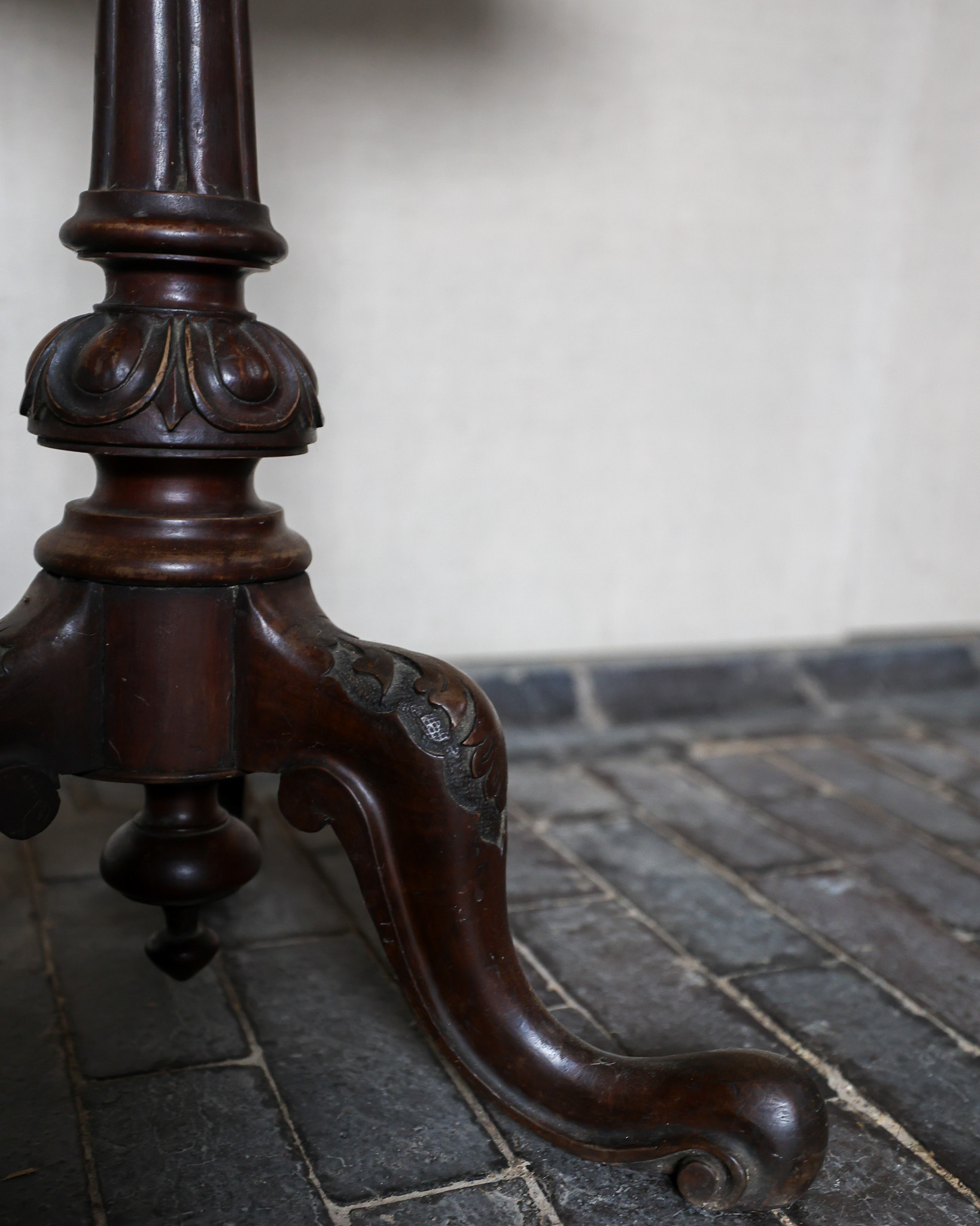 Oval marble topped walnut pedestal table. Circa 1880. £795.